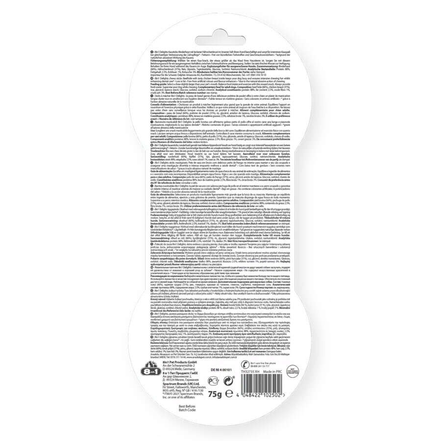 Köpeğiniz hem iştahla yerken aynı zamanda da diş temizliğini gerçekleştirecektir. 8in1 Delights Bones içinde bulunan yüksek kalitede sindirilmiş tavuk eti sayesinde köpeğiniz son parçasına kadar ilgil duymasını ve büyük bir iştahla yemesini sağlar. 8in1 Delights Bones benzersiz patentli kombinasyonu sayesinde köpeğiniz çiğnerken diş ve diş etlerini sağlıklı ve daha güzel hale getirir.