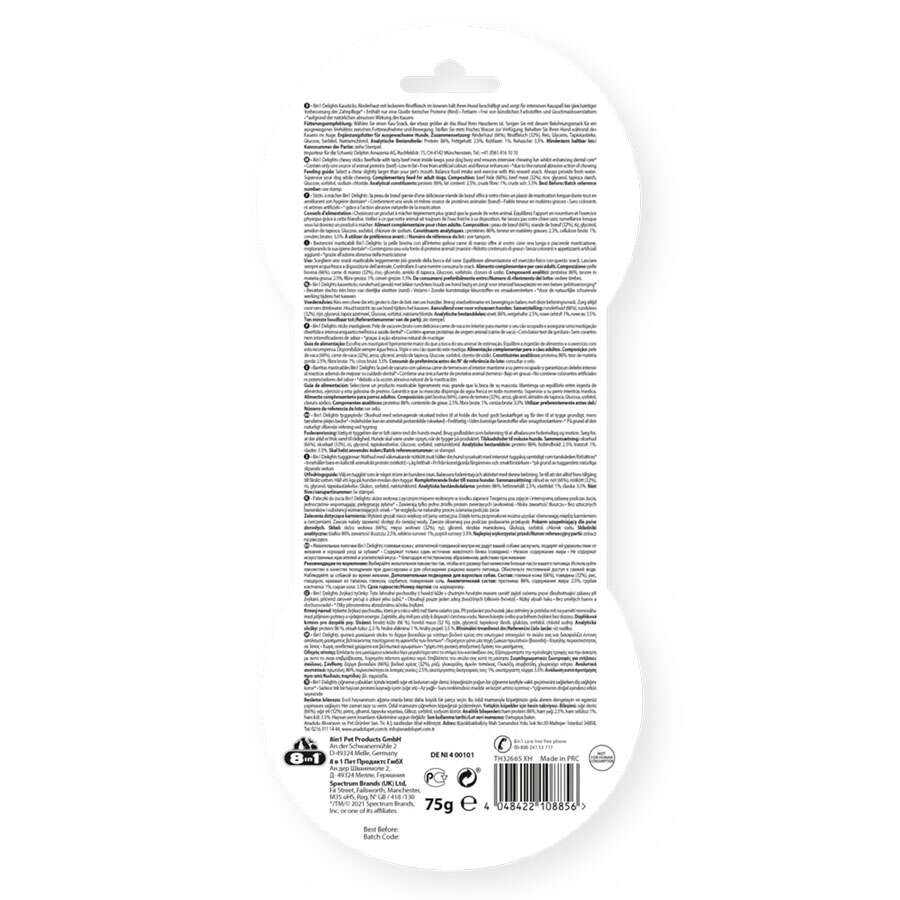 Köpeğiniz hem iştahla yerken aynı zamanda da diş temizliğini gerçekleştirecektir. 8in1 Delights beef sticks içinde bulunan yüksek kalitede sindirilmiş biftek sayesinde köpeğiniz son parçasına kadar ilgil duymasını ve büyük bir iştahla yemesini sağlar. 8in1 Delights Bones benzersiz patentli kombinasyonu sayesinde köpeğiniz çiğnerken diş ve diş etlerini sağlıklı ve daha güzel hale getirir.