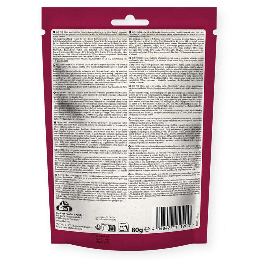 Et ve hayvansal yan ürünleri (tavuk eti % 80,00), bitkiselalbuin ekstraktı, sıvı ve katı yağlar (keten tohumu yağı % 0,50), tahıllar,mineraller.