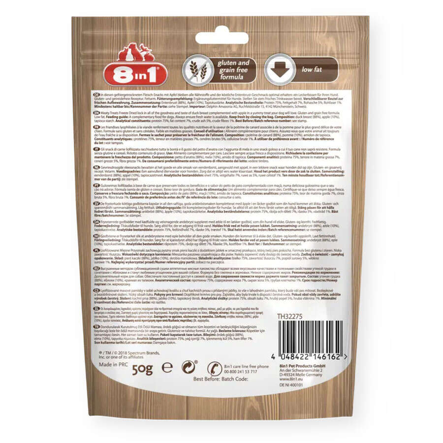 Ördek göğsünün tüm lezzetini ve besleyiciliğini köpeğinizin bayılacağı leziz bir ödül mamasında bir araya getirir.Glutensiz ve tahılsız formül.Az yağ içeren tarif.Köpekler için tamamlayıcı mama.Ürün kullanımı sırasında her zaman taze su bulundurunuz.Ürünü kullandıktan sonra paketi kapatarak taze tutunuz.