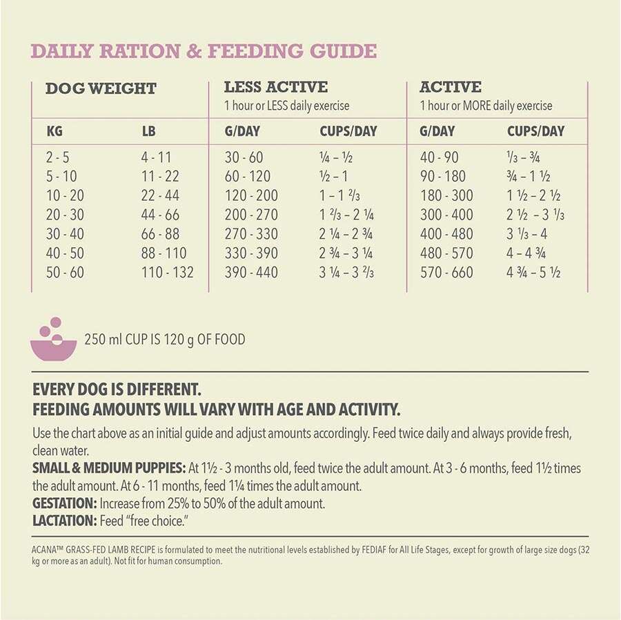 ACANA Grass-Fed Lamb, WholePrey oranlarında et, organ ve kıkırdaklardan oluşan %50 kaliteli kuzu malzemeleri ile doldurulmuş, lezzetli, bütün Kırmızı Lezzetli elmalar ile tamamlanarak köpeğinizin mutlu kalması için ihtiyaç duyduğu protein ve besinleri sağlar, sağlıklı ve güçlü.