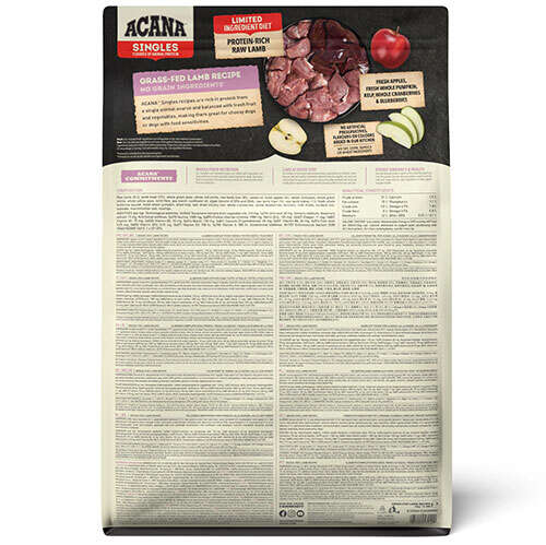 Sınırlı içerik, daha az et anlamına gelmez. ACANA Grass-FedLamb WholePrey oranlarında %50 Kaliteli kuzu eti içerikleriyle yüklüdür velezzetli bütün Kırmızı Elma ile tamamlanmıştır, köpeğinize mutlu, sağlıklı vegüçlü kalabilmeleri için ihtiyaç duyduğu protein ve besinleri sağlar.