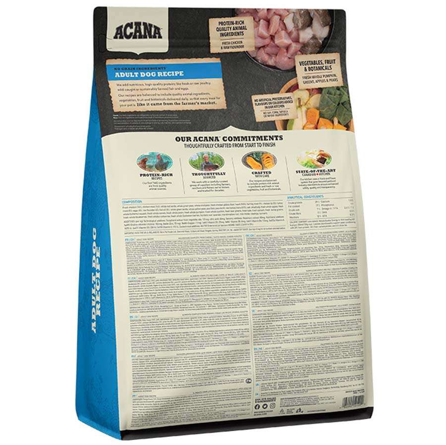 Serbest dolaşan tavuk, serbest avlanan pisi balığı ve kafessiz yumurtalar içeren ACANA Adult Dog, köpeğinizin ihtiyaç duyduğu protein ve besinlerle doludur. WholePrey et, organ, kıkırdak ve kemik oranlarında ACANA, besinleri doğal olarak, en besleyici formlarında vererek köpeğinizi mutlu, sağlıklı ve güçlü tutar.