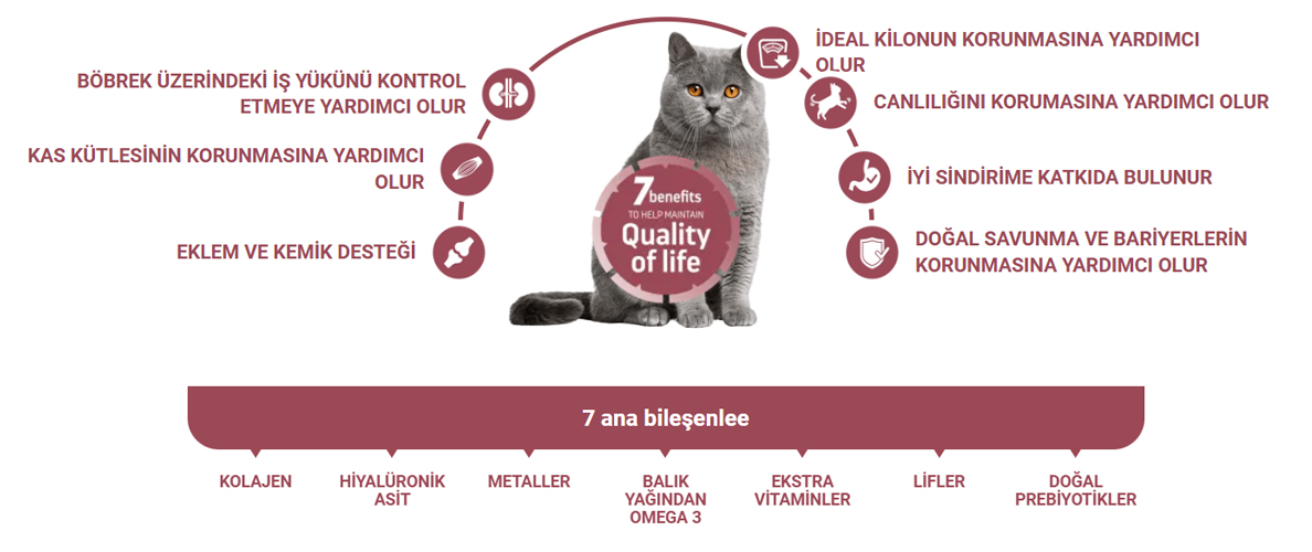 10 yaş üzeri kısırlaştırılmış kediler için özel formüle edilmiştir: