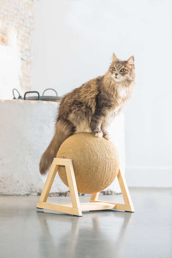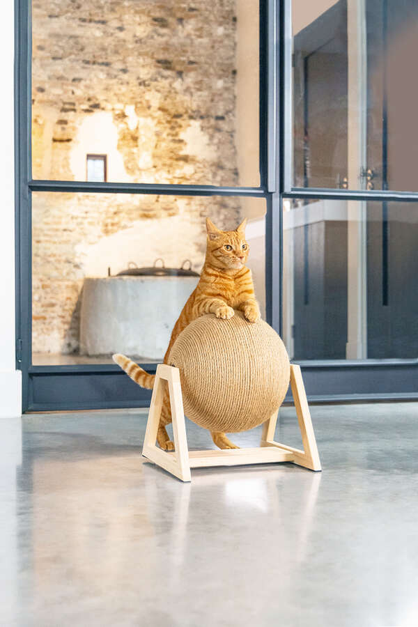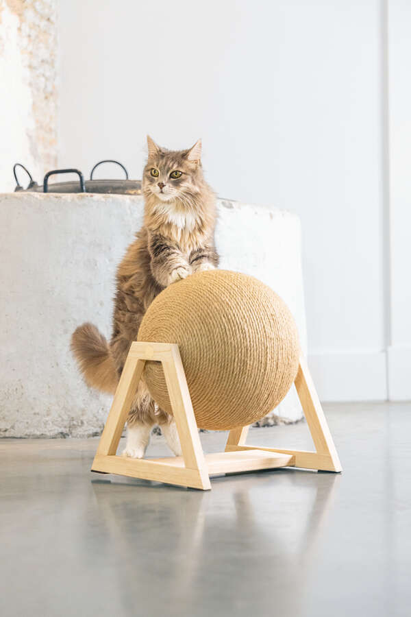 Tasarımı Lotte Balty tarafından yapılan Balty kazıma küresi tabii ki zaten büyük bir başarıydı! Güzel olan şey, bu Xem'in stand üzerinde Balty ile mükemmel uyum sağlamasıdır. Bu büyük kazıma küresi çok şık görünüyor ve kedinizin tırmalaması için yeterli alan sunuyor. Kazıma küresi dönebilir değil, çünkü küre standa sabitlenmiş. Bunun yanı sıra kazıma küresi kediniz için gerçekten eğlenceli olduğu kadar, evde de harika görünüyor. - Jüt ip - Ahşap stand - Ahşap için koruma ayakları dahil Ölçüler: 34x30x35.5 cm