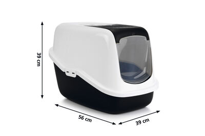 Beeztees Kapalı Kedi Tuvaleti, Koku Filtreli, Siyah Beyaz, 56x39x39cm