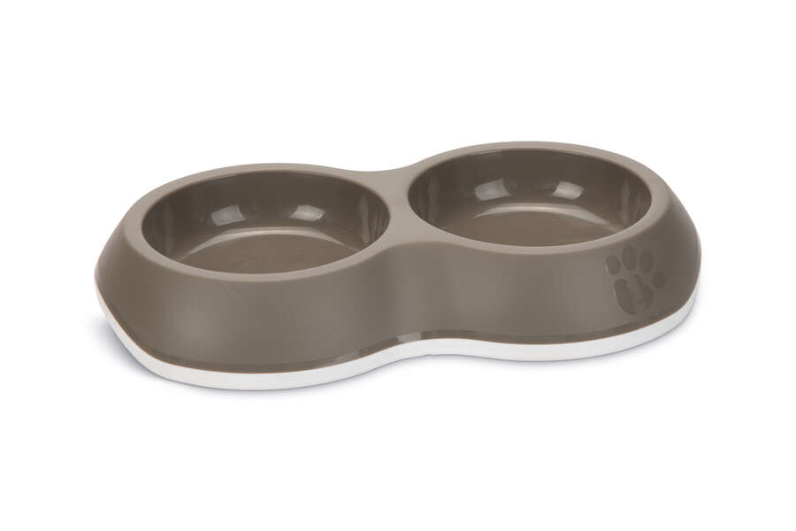 Beeztees Kedi İkili Mama ve Su Kabı, Premium, Plastik, Bej/Gri, 26cm