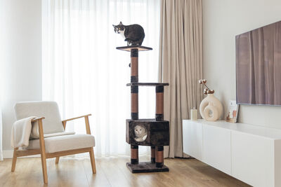 Beeztees Kedi Köşe Tırmalama ve Oyun Evi, Kahverengi, 40x40x135cm