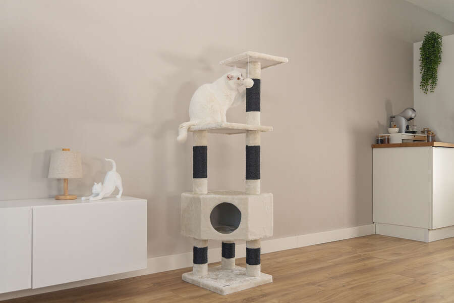 Beeztees Kedi Köşe Tırmalama ve Oyun Evi, Krem, 40x40x135cm