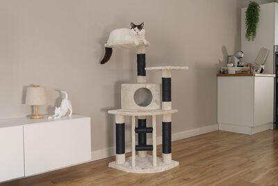 Beeztees Kedi Tırmalama ve Oyun Evi, Krem, 50x50x123cm