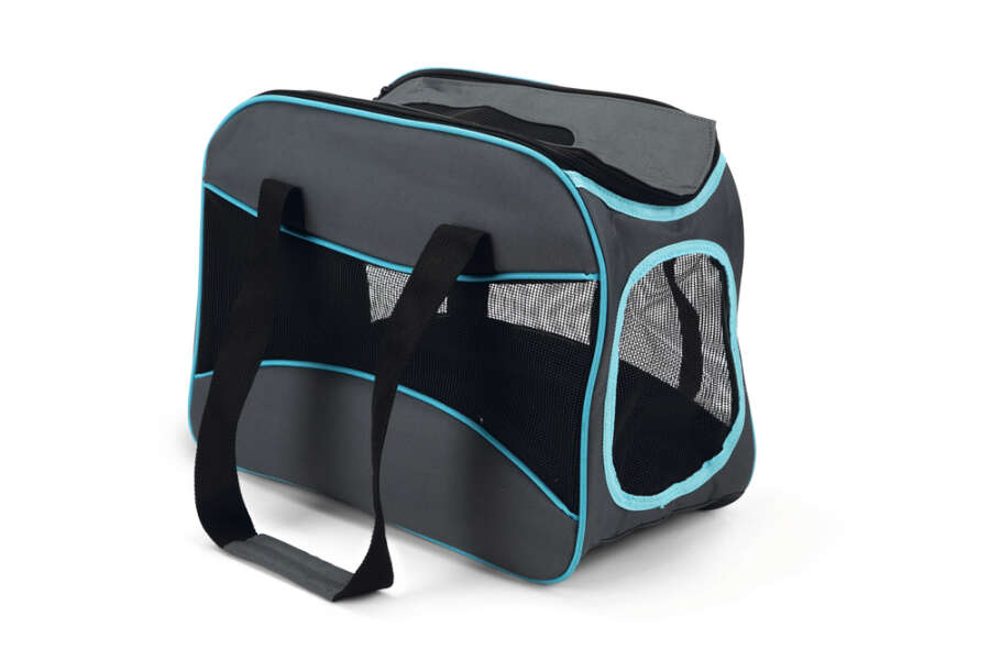 Beeztees Travel Bag Uconi ile kesinlikle görülebilirsiniz. Bu naylon seyahat çantası küçük köpekleri taşımak için idealdir. Köpeğinizin tasmasını veya göğüs tasmasını takmak için iç kısımda elastik bir kayış ve tetik kancası bulunmaktadır. Böylece en iyi dostunuzun güvende olduğunu ve heyecan verici bir şey gördüğünde dışarı atlamayacağını bilirsiniz. Çantanın önünde ve yanlarında file bulunmakta ve bu, köpeğiniz için bol miktarda taze hava sağlamaktadır. Ayrıca, yürürken köpeğinizin etrafa bakabilmesi için çantayı biraz açmanız da mümkündür. Boyutlar: 42 x 21 x 30 cm.