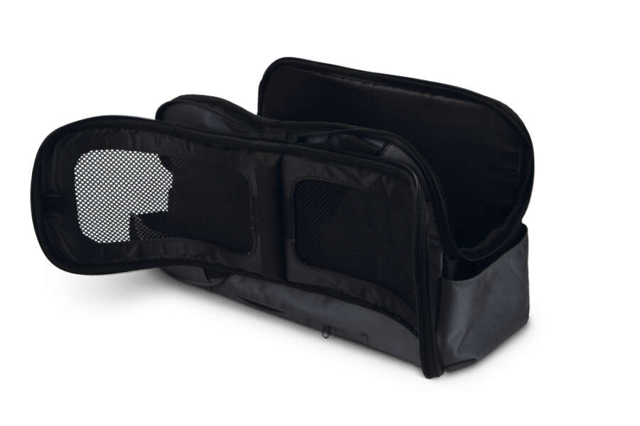 Beeztees 2-in-1 Travel Bag Wagoni, arabanızda kullanım için ek bir fonksiyonla birlikte seyahat çantasından isteyebileceğiniz her şeyi sunan çok işlevli bir çantadır. Bu çantanın hem üstte hem de altta, çantayı arabada sabitlemek için bir emniyet kemeri geçirebileceğiniz açıklıklar bulunmaktadır. İçeride köpeğinizin tasması veya göğüs tasmasını takmak için bir tetik kancası olan elastik bir kayış vardır. Böylece en iyi dostunuzun güvende olduğunu ve heyecan verici bir şey gördüğünde atlamayacağını bilirsiniz. Çanta, köpeğiniz için çok rahat olan yastıklı bir taban plakasına sahiptir. Döşeme, çıkarılabilir ve 30 derecede makinede yıkanabilir bir tür kumaş kaplamadır. Tüm üst kısım fermuarlıdır, böylece tamamen açabilir ve köpeğinizi çantaya koymak için yeterli alanınız olur. Maksimum taşıma ağırlığı 7 kg'dır. Boyutlar: 44 x 20 x 27 cm.