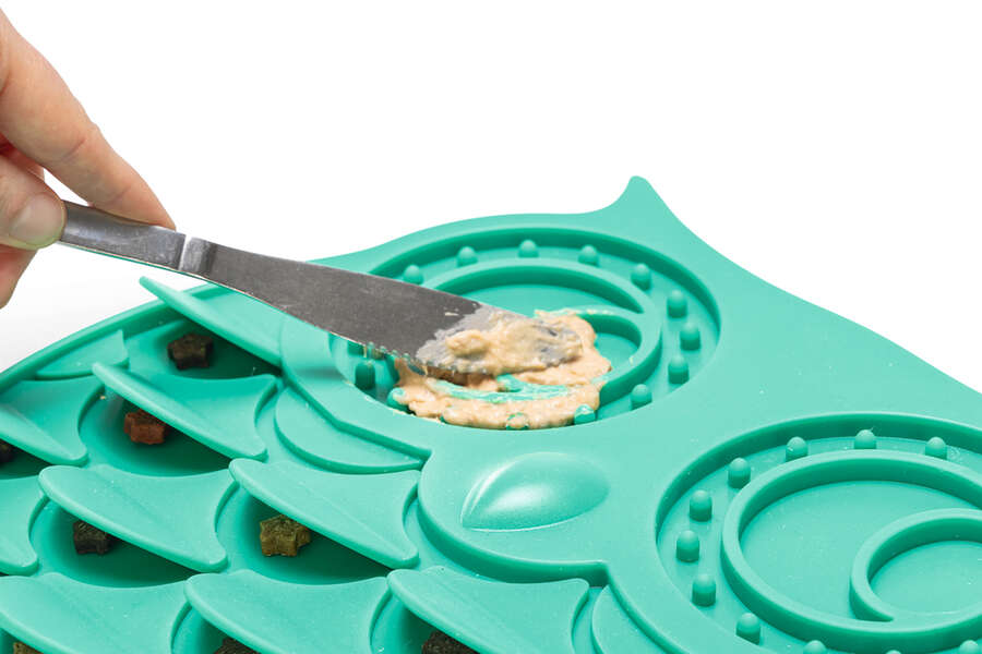 Beeztees Lick Mat Owl ile köpeğiniz için lezzetli bir yemek hazırlayabilirsiniz. Bu yalama matı sadece eğlenceli bir aktivite sağlamakla kalmaz, aynı zamanda köpeğinizin atıştırmalığını daha uzun süre keyifle yemesini de sağlar. Yalama matı, yiyeceklerin matın oyuklarına yerleşmesi sayesinde köpeğinizin yiyecekleri hızlıca yemesini önler. Matı yalamak köpeğinize rahatlama sağlar ve yalama matının dokusu dilin temizlenmesine yardımcı olur. Ekstra güzel olan şey, yiyecekleri yalama matında saklayabilir ve köpeğinizin atıştırmalığını aramasını sağlayabilirsiniz. Yalama matı silikondan yapılmıştır ve kaymayı önlemek için altında vantuzlar bulunur. Yalama matını içi dolu şekilde dondurun ve köpeğinize sıcak yaz günlerinde serinletici lezzetli bir atıştırmalık verin. Yalama matı bulaşık makinesinde temizlenebilir. - Yavaş yemeyi teşvik eder ve hızlı yemeyi önler - Köpeği rahatlatır ve stresi azaltır - Ağız hijyenini destekler - Silikondan yapılmıştır - Vantuzlarla - Bulaşık makinesinde güvenli - Mikrodalga fırında 600 Watt'a kadar güvenli Ölçüler: 30x28x1cm