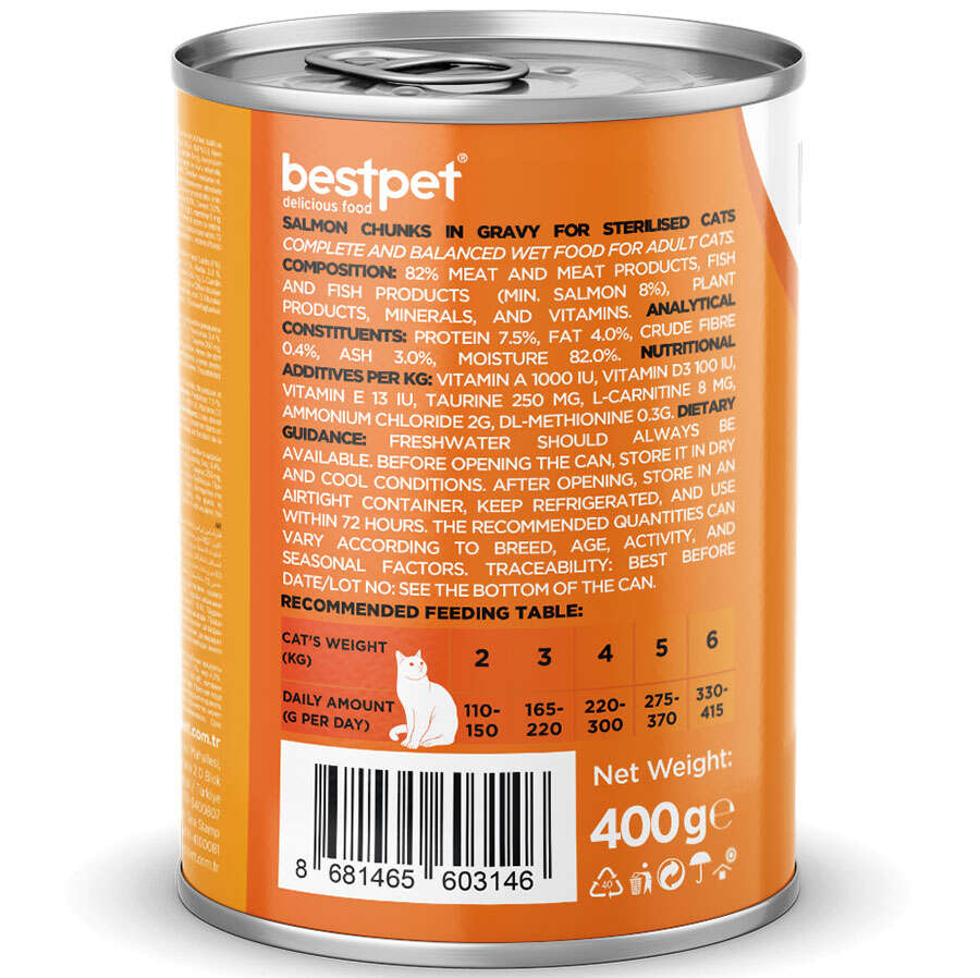 2,4 - 5 kg arası kediler için, 180 - 360gr tüketilmesi tavsiye edilmektedir.