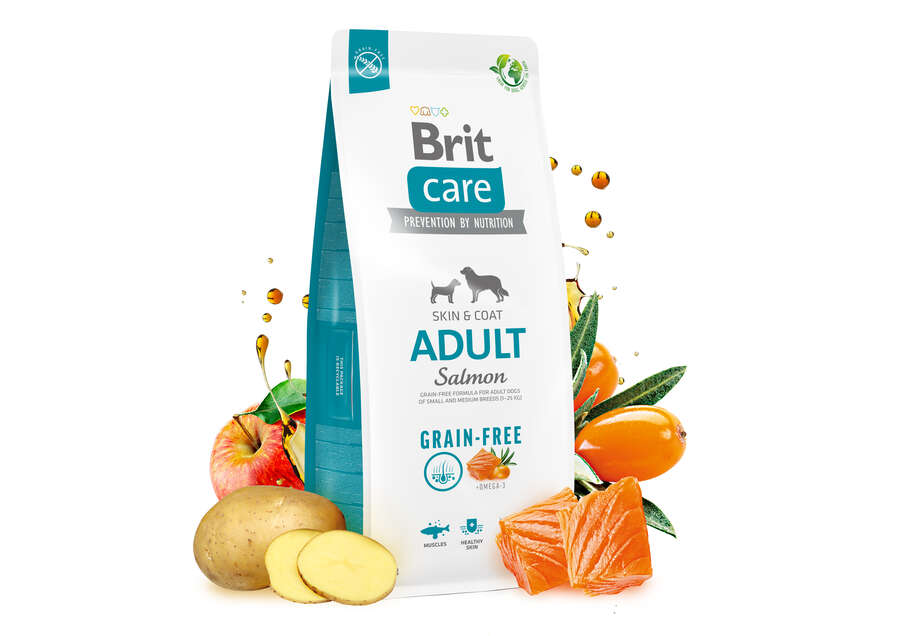 Malzemeler: Somon kurutulmuş (% 35), patates (% 34), somon protein (% 10), tavuk yağı (koruma tokoferol), kurutulmuş elma, doğal lezzet, somon yağı (% 2), bira mayası, deniz kabuklular (kaynak kabukları: glukozamin, 260 mg / kg), kıkırdak özü (kondroitin kaynağı, 160 mg / kg), mannanooligosakaridler (/ kg 150 mg), meyve ve bitki ekstraktı (biberiye, karanfil, narenciye, zerdeçal, 150 mg / kg), frukto oligosakkaritler (100 mg / kg), avize ağacı (100 mg / kg), inulin (90 mg / kg), deve dikeni (Silybum marianum) (75 mg / kg).