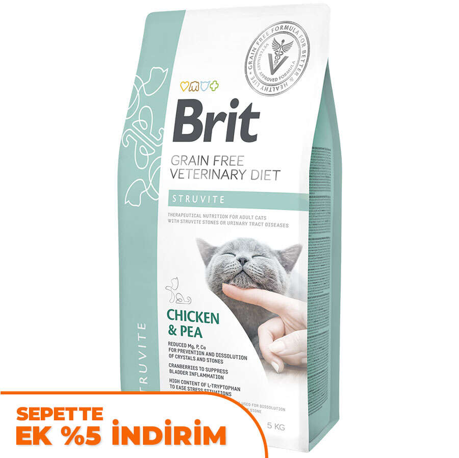 Brit Veterinary Diets Struvite Tahılsız Tavuk Bezelye Kedi Maması 5 Kg + Temizlik Mendili