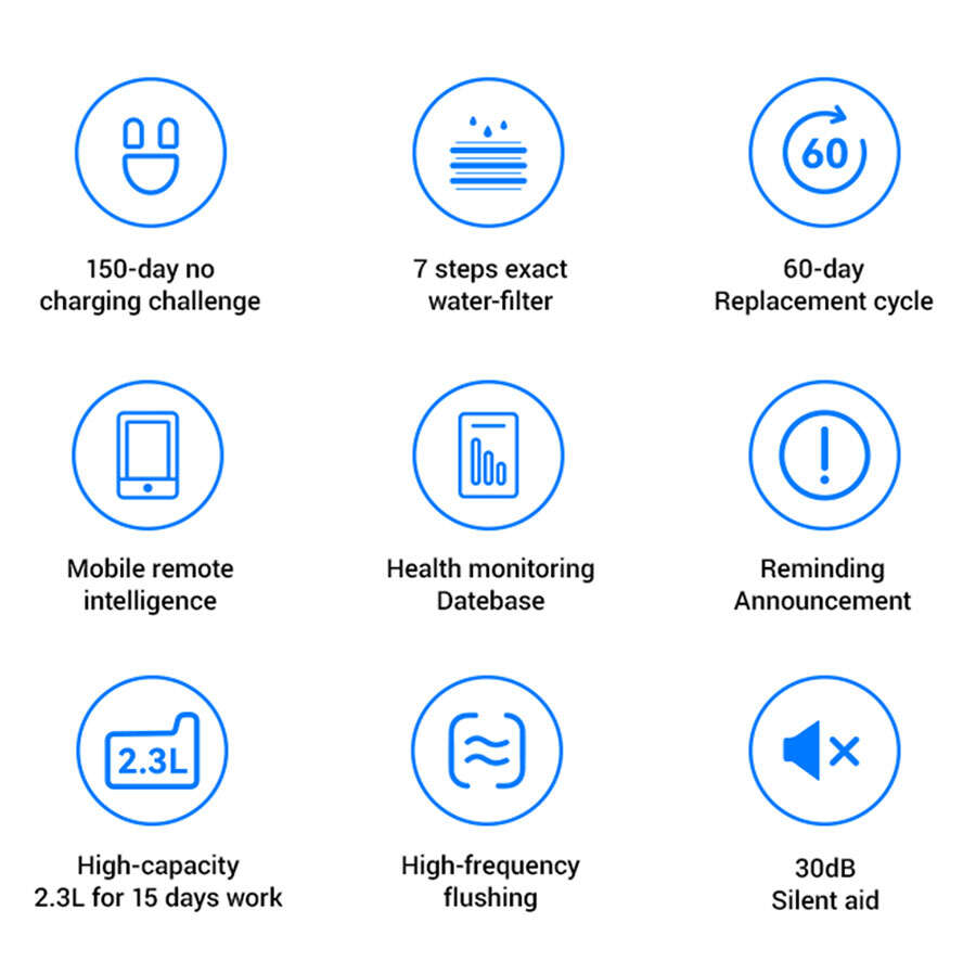 Arka akışı önleyen çift filtre yapısı (tam kapalı filtre ve paslanmaz çelik filtre) sayesinde su güvenli ve temiz kalır. Tüm sistem, gıda sınıfı ABS malzeme kullanılarak hijyenik tasarlanmıştır. Filtre değişim aralığı ortalama 60 gündür.