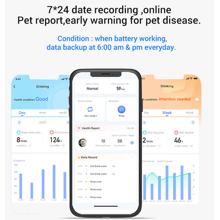 “Sürekli”, “gece”, “ara”, “akıllı” ve “saç temizleme” gibi beş farklı kullanım modu sunar. Ayrıca uygulama üzerinden 7/24 sağlık verisi kaydı ve erken uyarı sistemiyle evcil dostunuzun hidrasyon alışkanlıklarını takip edebilirsiniz.