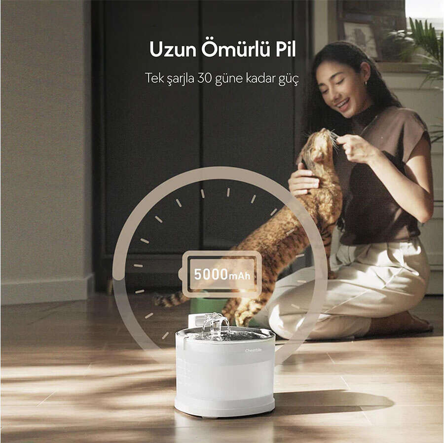 Şarjlı ve Kablosuz Kullanım: Tam şarjla uzun süre kablosuz kullanım imkanı sunar, böylece su pınarını istediğiniz yerde kullanabilirsiniz.