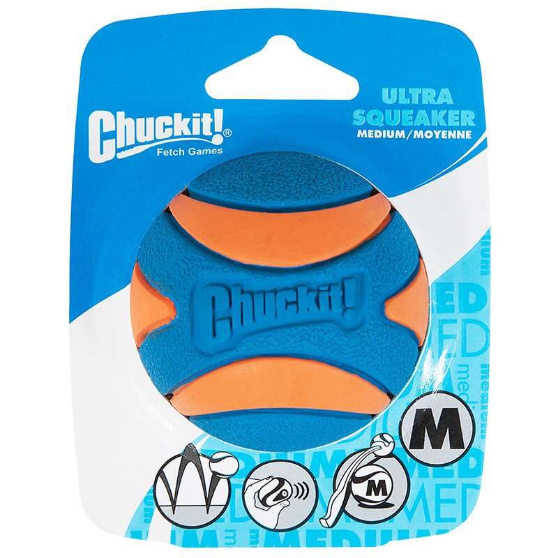 * Chuckit! Ultra Ball'un ses çıkaran versiyonu olan Ultra Squeaker parlak renkleri, üstün malzeme kalitesi, esnekliği, dayanıklılığı, yüksek zıplama kabiliyeti ve suda batmaması ile kadar şu ana kadar üretilmiş en kusursuz köpek oyun topudur.