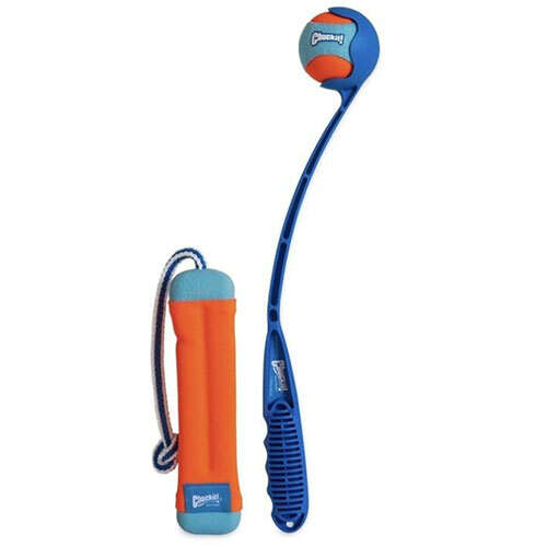 Chuckit Suda Batmayan 3'lü Oyun Seti ile eğleneceyikatlayın. Setin içerisinde 45cm uzunluğunda Medium toplarla uyumlu fırlatıcı, 1adet Chuckit Suda batmayan oyun topu ve bir adet Chuckit Suda Batmayan KöpekOyuncağı bulunmaktadır.