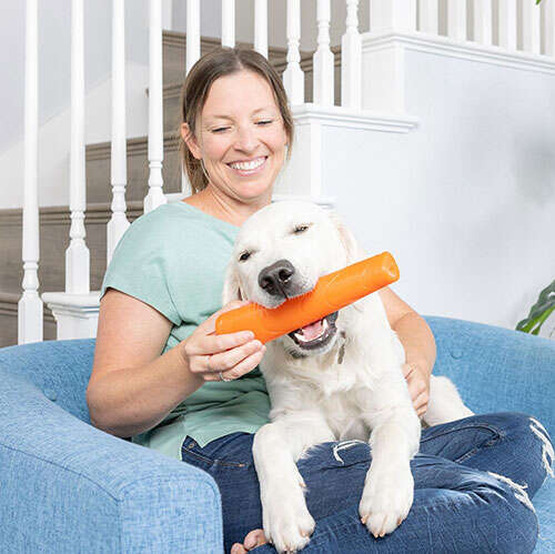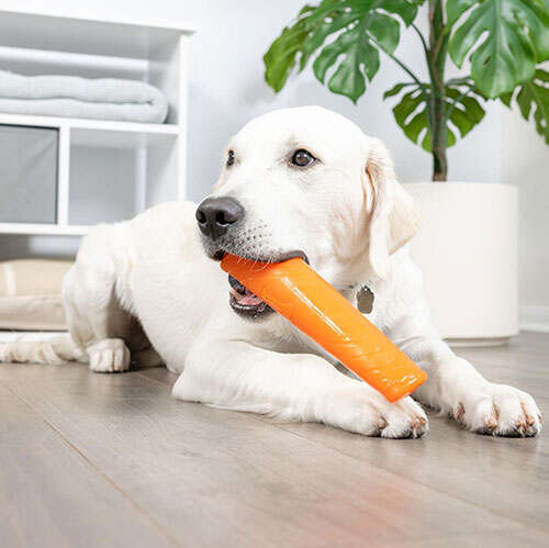 Chuckit! Super Crunch Stick, köpeğinizin içgüdülerini harekete geçiren, çıtırdayan seslerle oyun keyfini artıran bir “fetch” oyuncak çubuğudur. TPR (termoplastik kauçuk) malzemesi dayanıklıdır; suya dayanıklı yapısı ve ergonomik, tapered tasarımı sayesinde orta ve büyük ırk köpeklerle oynanmak üzere uygundur. Düzensiz zıplamaları ve içinden gelen hışırtılı ses, köpeğinizin ilgisini canlı tutar, hem zihinsel hem fiziksel uyarım sağlar.