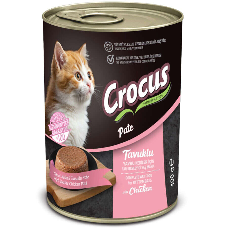 Crocus Yavru Kedi Tavuklu Pate Yaş Mama 400gCrocus Yavru Kedi Tavuklu Pate Yaş Mama, büyüme dönemindeki yavru kedilerin sağlıklı gelişimi için özel olarak formüle edilmiştir. Yüksek kaliteli tavuk proteini, temel vitaminler ve minerallerle zenginleştirilmiş içeriği sayesinde güçlü bir bağışıklık sistemi, sağlıklı kas gelişimi ve enerji dolu bir yaşam sunar.