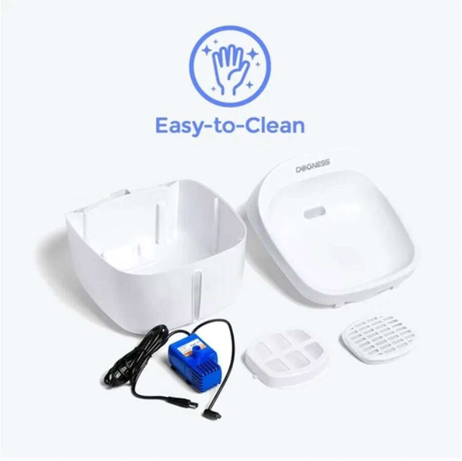 Dogness Akıllı Su Çeşmesi, sessiz bir su pompasına ve kiri, tüyü ve kokuları gideren çift filtreye sahiptir , böylece su her zaman berrak ve taze kalır. Ayrıca, kontrol düğmesi veya uygulama aracılığıyla su akışını ayarlayarak doldurma ve bakımı kolaylaştırabilirsiniz.