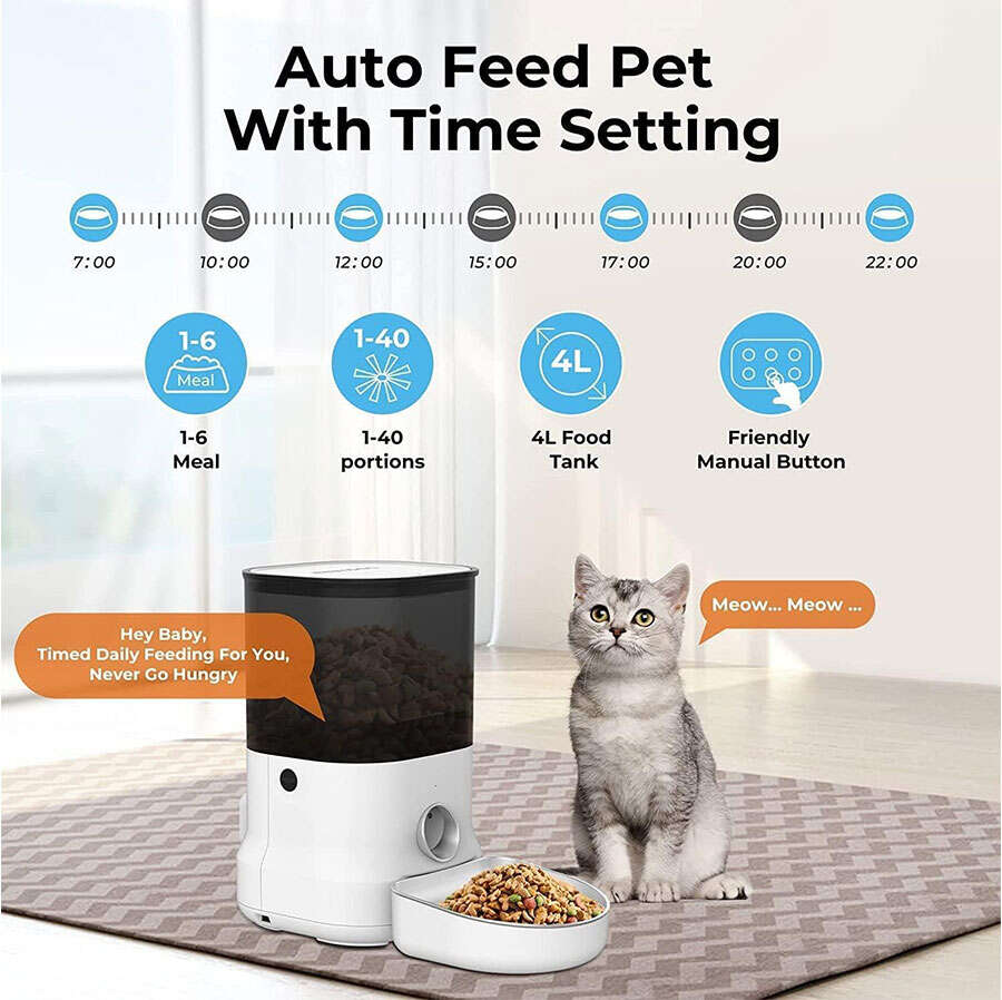 Programlanabilir Öğünler: Besleyici, doğrudan kontrol paneli üzerinden ayarlanarak günde 4 öğüne kadar programlanabilir. Her öğünde 39 porsiyona kadar mama verebilirsiniz, böylece evcil hayvanınızın düzenli ve dengeli beslenmesi sağlanır.
