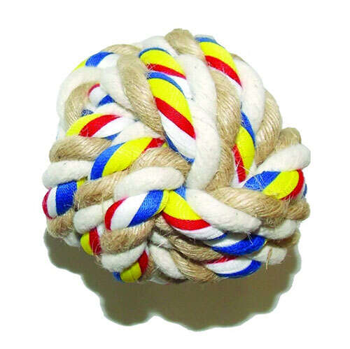 Köpekler için, oyun oynarken kemirme ihtiyacını gidermenin yanısıra stres atmalarına yardımcı olan, 5 cm çapında, stres ipli düğüm top köpek oyuncağı.Sıkıştırılmış kumaşlardan yapılmış, top şeklinde stres ipi bulunmaktadır.Tut - getir, fırlatma, gibi birlikte yapılabilecek egzersizler için uygundur.
