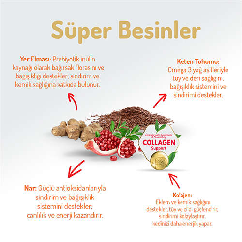 Yüksek Sindirilebilirlik: Sağlıklı tahıl ve pirinç içeriği ile besinlerin daha kolay sindirilmesini sağlayarak, yaşamsal aktiviteler için enerji tasarrufu sağlanmasına yardımcı olur. Besinlerden yararlanımı maksimum seviyeye çıkarılmasını, böylece daha az ve kuru dışkı atılımını destekler.