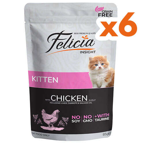 Felicia Pouch Kitten Tavuk Etli Yavru Tahılsız Kedi Yaş Maması 85 Gr x 6 Adet