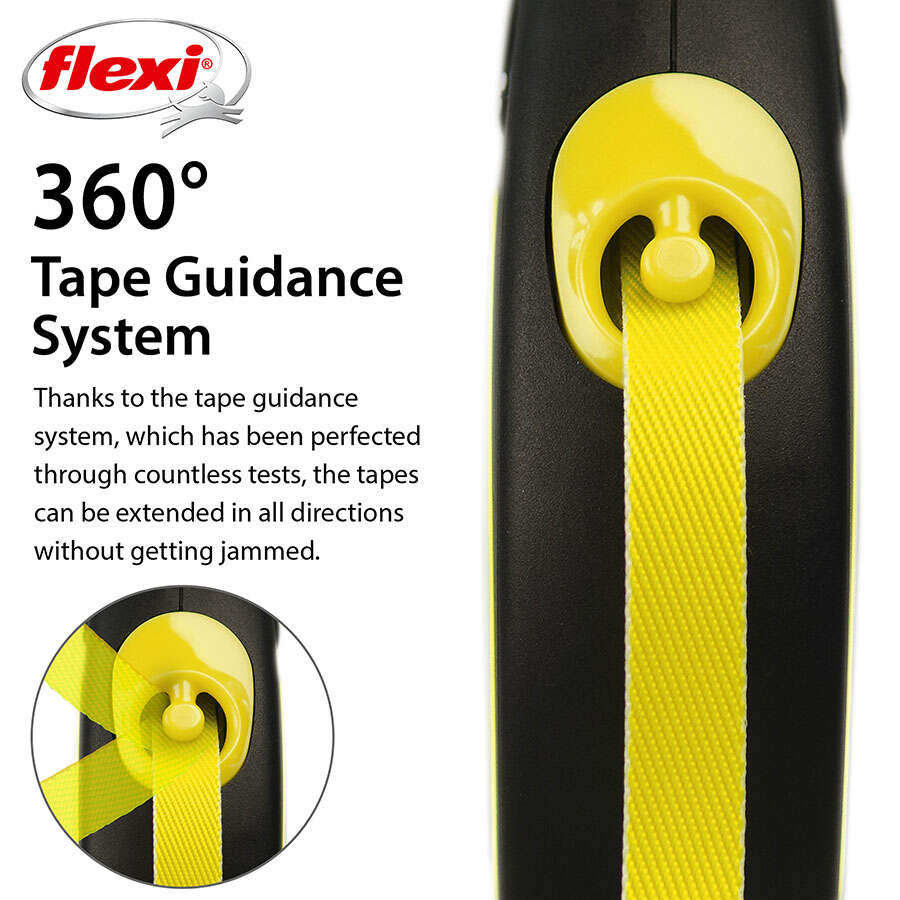 Flexinin göz kamaştıran Neon serisi parlak uzatması ve yansıyan gövdesi ile oldukça dikkat çekicidir. 25 kg ağırlığa kadar olan köpekler için güvenle kullanılabilecek, otomatik sarmallı, yumuşak tutuşlu, güvenlik plus sistemli gezdirme tasmasıdır.