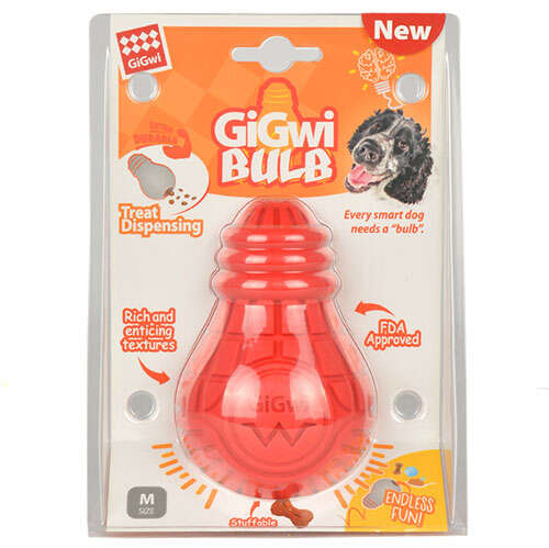 Gigwi Bulb, köpeğiniz için içerisine mama koyabileceğiniz diş kaşıma özellikli ve ısırmaya yüksek dayanıklı bir oyuncaktır. Köpeğinizin çiğneme, diş kaşıma gibi içgüdüsel davranışları için kullanabilir.