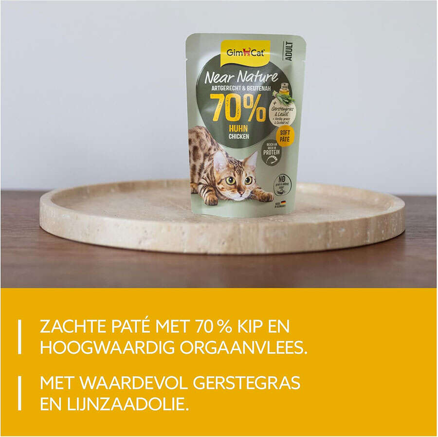 Gimcat Near Nature, doğal av hayvanlarının besin profili temel alınarak geliştirilmiştir; özellikle yüksek proteinli ve besleyici içeriğiyle içgüdüsel olarak en ideal beslenmeyi sağlar.