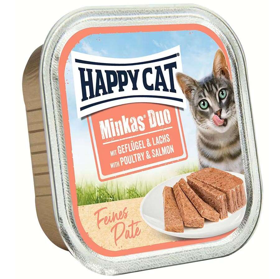 Lezzetli ve tahılsız Happy Cat Minkas Duo pate, nefis kümes hayvanları ve sulu somon eti ile kadife patiler için bir ödüldür. Kolayca sindirilebilen tarif sadece şımartmakla kalmaz, aynı zamanda daha fazla çeşitlilik sağlar.