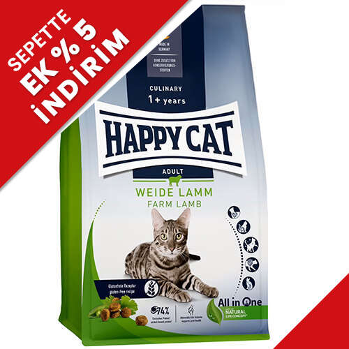 Yüksek kaliteli Happy Cat kuru mamalarımızı, özellikle nazik bir üretim süreci kullanarak en yüksek kaliteli malzemelerden hazırlıyoruz. Happy Cat'in besinsel olarak kanıtlanmış All in One konsepti , aktif içeriklerden oluşan özel formülüyle kedi sağlığının en önemli beş yönünü destekler. Formül bağışıklık sistemini güçlendirir, kalp sağlığını destekler ve idrar yolu ve sindirim fonksiyonunu destekler. Culinary Adult Farm Lamb'ımızdaki doğal omega 3 ve 6 yağ asitleri ayrıca sağlıklı bir deri ve parlak bir tüy sağlar.