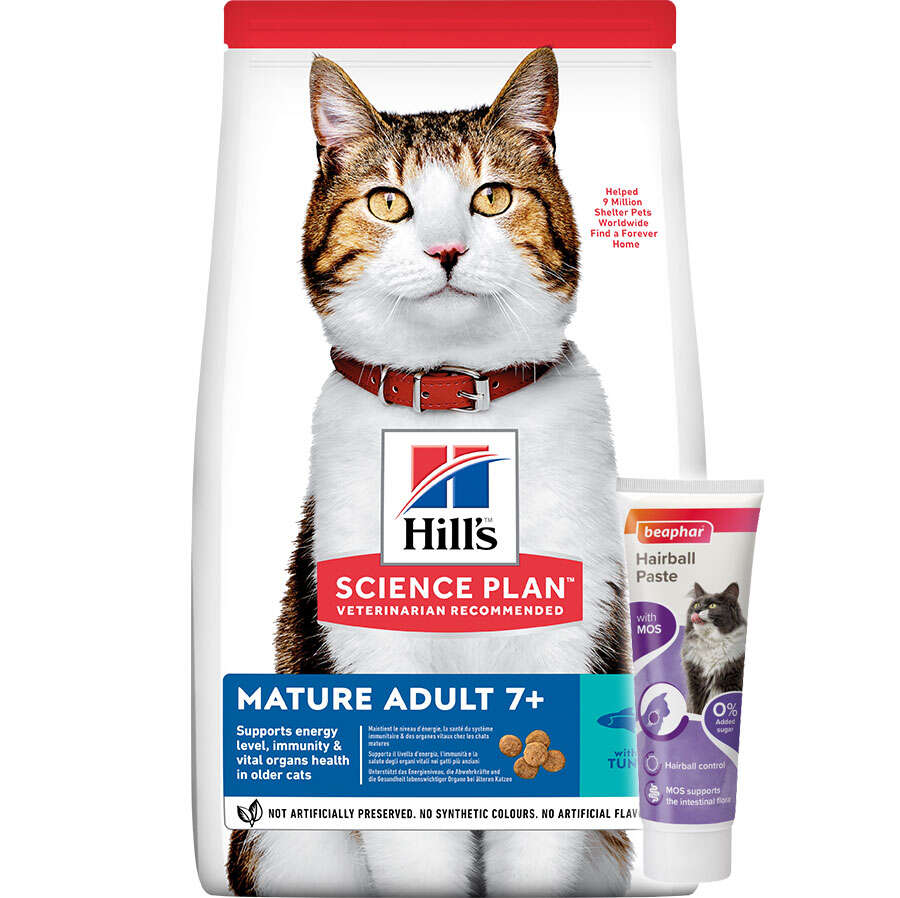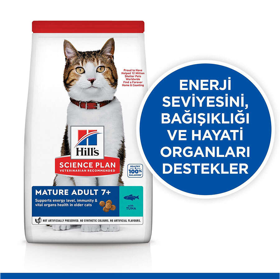 HILL'S SCIENCE PLAN Mature Adult kuru kedi maması kedilerde sağlıklı yaşlanmayı destekler. Enerji ve aktivite seviyesini desteklemeye yardımcı sinerjik bir karışım içerir.