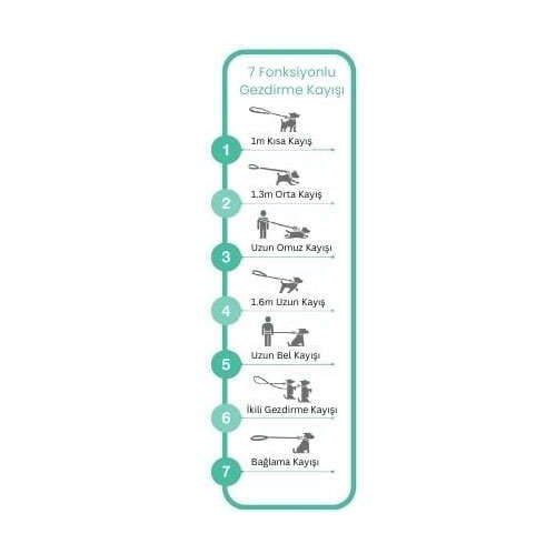 - Kısa/Orta/Uzun boy Kayış, Bel Kemeri, Omuz Kemeri, İkili Tasma ve Bağlama olarak kullanılabilir.