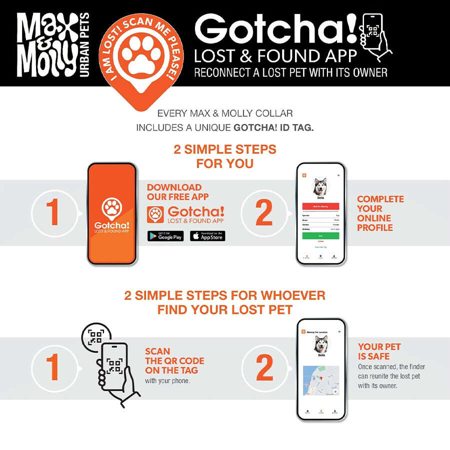 Bütün Max & Molly boyun tasmalarında SMART ID künye bulunmaktadır. Evcil dostunuzun güvenliği için id.max-molly.com adresinden kaydını yapabilirsiniz
