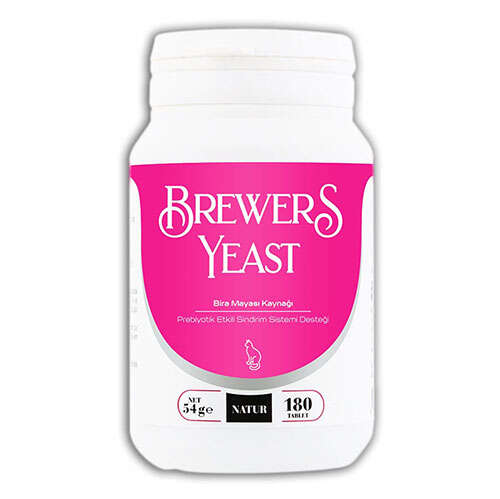 Kedilerde tüy dökülmesini önleyen, kepek oluşumunu engelleyen, sindirim sistemini düzenleyen ve bağışıklığı arttıran Brewers yeast (bira mayası) tabletleridir.