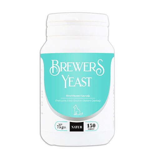 Küçük ve orta ırk köpeklerde tüy dökülmesini önleyen, kepek oluşumunu engelleyen, sindirim sistemini düzenleyen ve bağışıklığı arttıran Brewers yeast (bira mayası) tabletleridir.