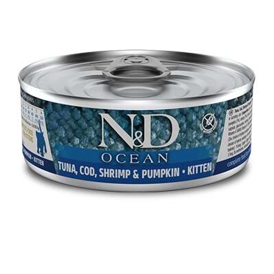 Ton balığı, Morina balığı, Karides & Balkabağı. Yavru kediler, gebe ve emzirme dönemindeki yetişkin kediler için tam mamadır.