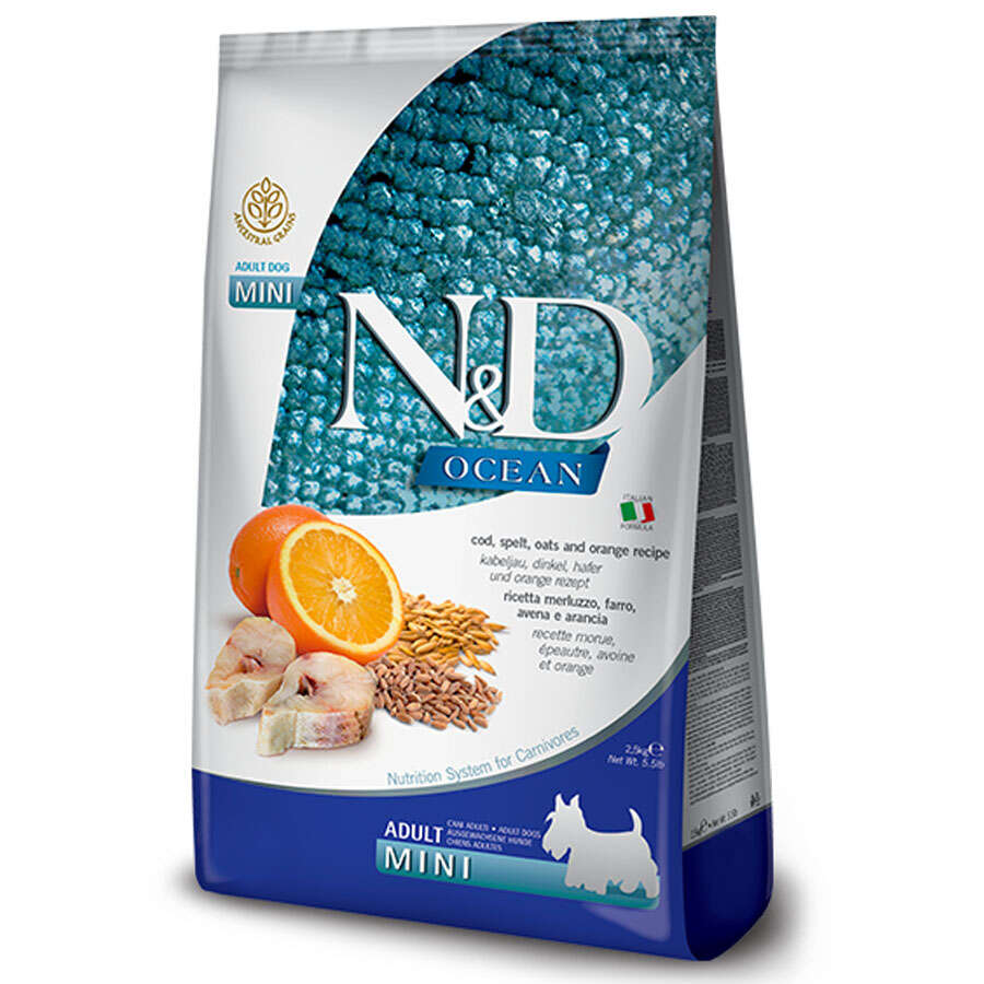 N&D (Naturel&Delicious) Düşük Tahıllı Morina Balıklı ve Portakallı Küçük Irk Yetişkin Köpek Maması 2,5 Kg