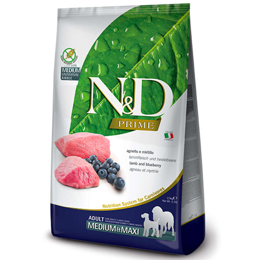 N&D (Natural&Delicious) Kuzu Eti ve Yaban Mersinli Yetişkin Tahılsız Orta ve büyük Irk Köpek Maması 2.5 Kg.