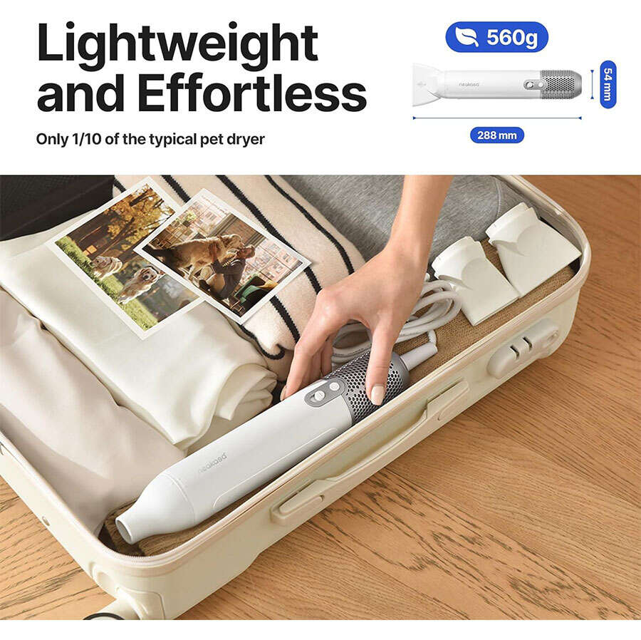Neakasa F1, evcil dostlarınızın banyo sonrası kurutma sürecini hızlı, güvenli ve stressiz hale getirmek için özel olarak tasarlanmıştır. Hafif yapısı, sessiz çalışma teknolojisi ve akıllı ısı kontrol sistemi sayesinde hem sizin hem de evcil hayvanınız için maksimum konfor sunar.