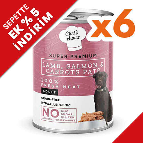 New Chefs Choice Pate Kuzu Somon Havuçlu Tahılsız Köpek Yaş Maması 400 Gr x 6 Adet