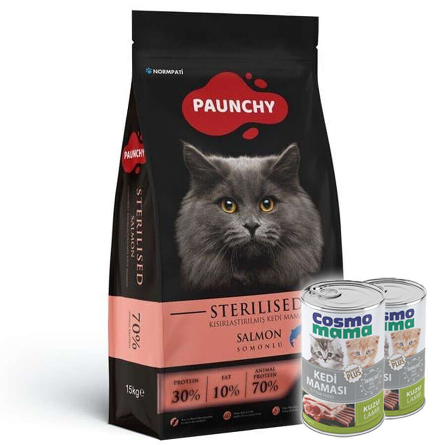 Paunchy Somonlu Kısırlaştırılmış Kedi Maması, kedinizin enerjiihtiyacını karşılamak için yüksek protein içeriğiyle öne çıkar. Aynı zamandaiçeriğindeki dengeli vitamin ve mineral profili ile kedinizin genel sağlığınıdestekler. Özel formülündeki taurin gibi besin maddeleri, kedinizin göz ve kalpsağlığını destekler.