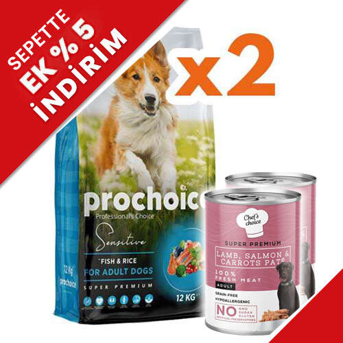 Pro Choice Sensitive Balıklı Hassas Köpek Maması 12 Kg x 2 Adet + 2 Adet 400 Gr Yaş Mama