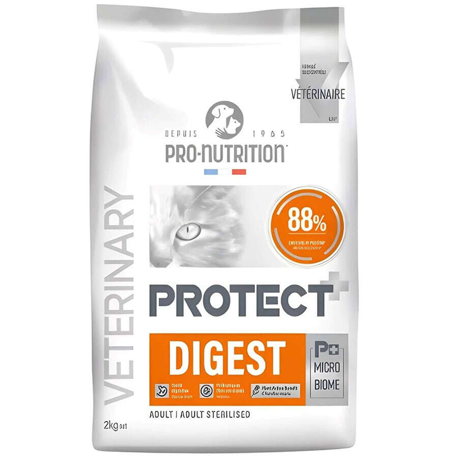 ProNutrition Protect Veterinary Digest Hypo-Allergenic Kedi Maması, Özel beslenmeihtiyaçları olan kediler için tam bir diyetetik mamadır. İçerik ve besinintoleranslarının azaltılması, dermatoz ve aşırı tüy dökülmesi durumunda ciltfonksiyonunun desteklenmesi, aynı zamanda beslenme restorasyonu, nekahet dönemi(hastalık sonrası sağlıklı duruma geçme dönemi) için destek olarak da uygundur.